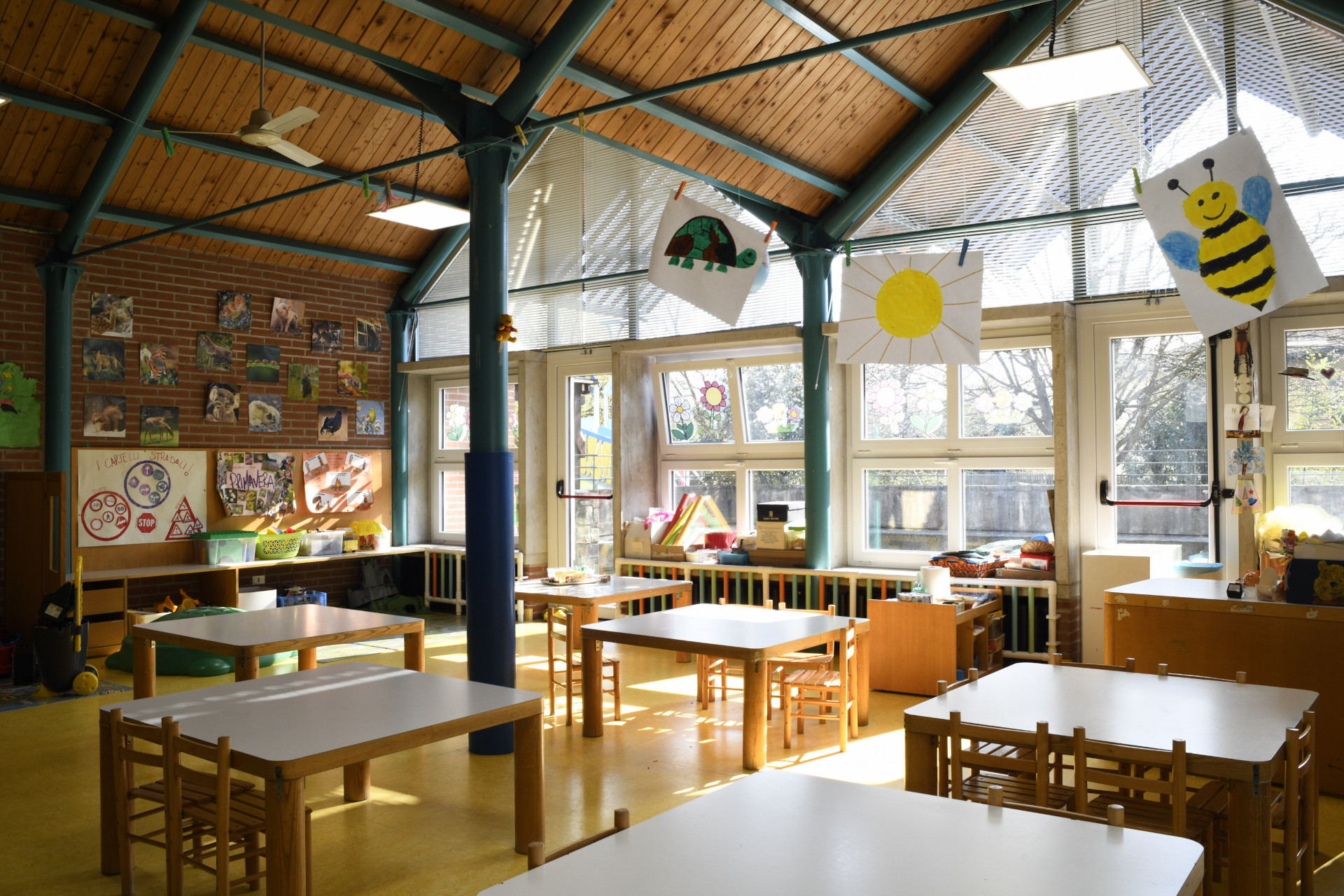 Gli spazi sono organizzati in modo che i bambini possano esplorare e sperimentare liberamente, ma anche in modo strutturato per favorire la loro curiosità e creatività.